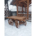 Изготовлена из сухого струганного пиломатериала (сосна). Детали изделия соединены оксидированными саморезами и оцинкованными гвоздями. Макет садовой деревянной телеги станет не только лучшим украшением Вашего приусадебного участка и детской игровой площадкой, но и скроет от посторонних глаз канализационные люки и прочие коммуникации. Телега декоративная для сада, все детали тщательно проработаны.