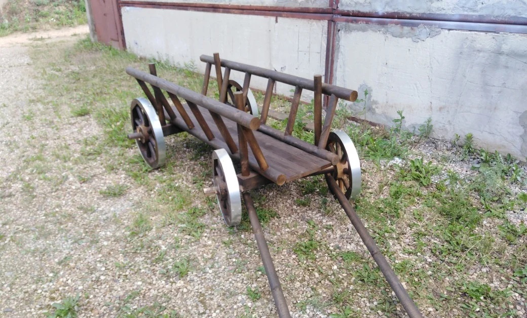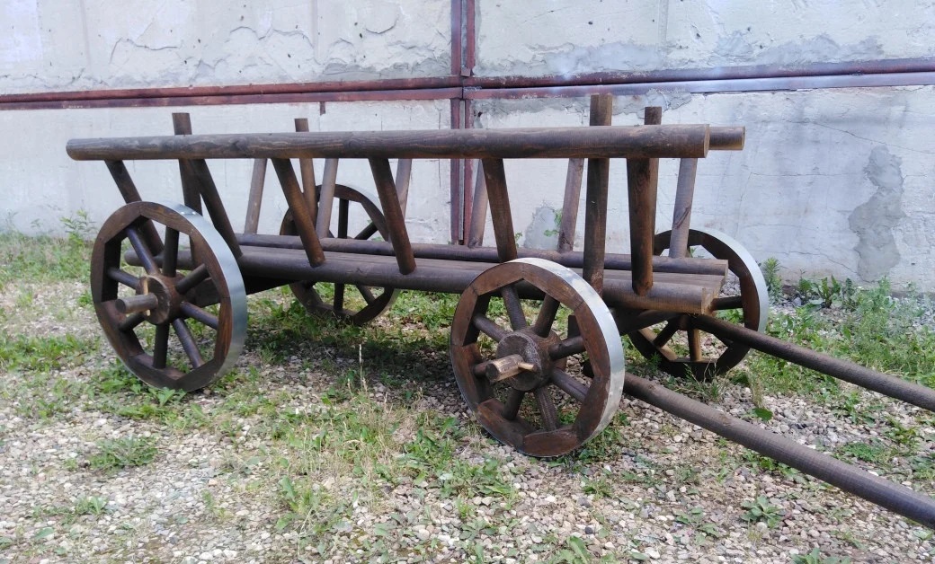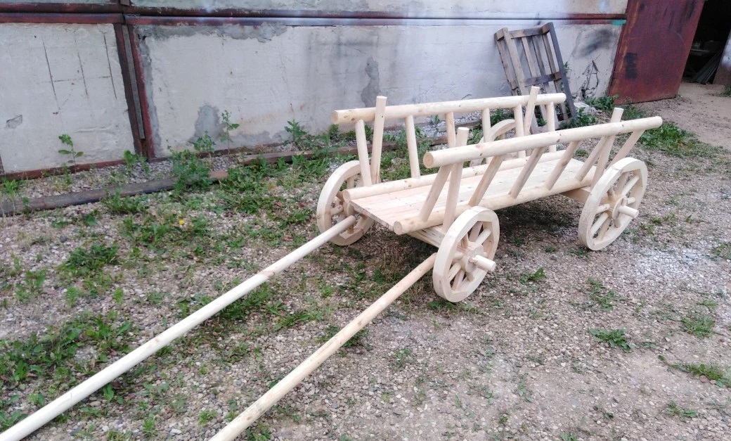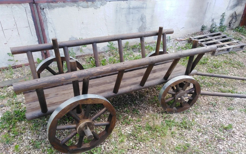 - Телега деревянная декоративная для сада.