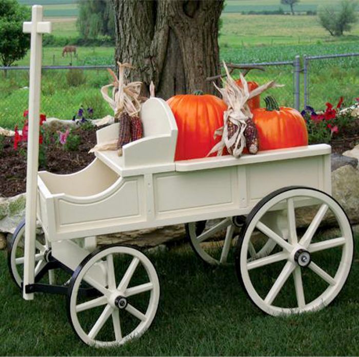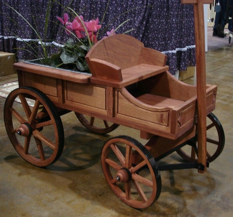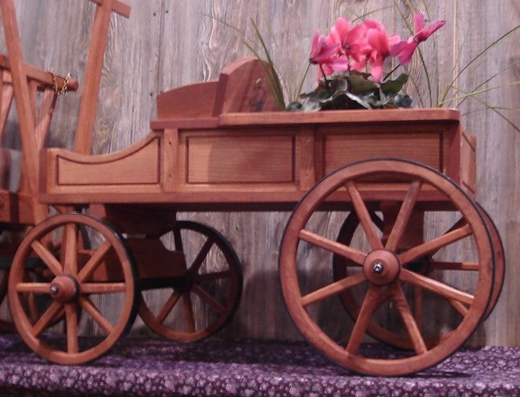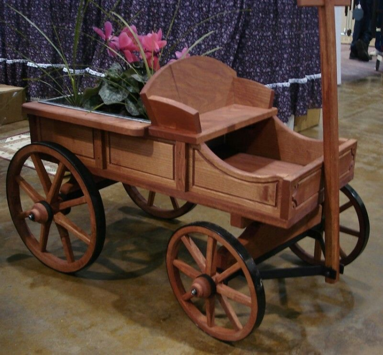 Изготовлена из сухого струганного пиломатериала (сосна). Детали изделия соединены оксидированными саморезами и оцинкованными гвоздями. Для защиты древесины от воздействия окружающей среды изделие покрыто антисептиком для деревянных изделий. Макет садовой деревянной телеги станет не только лучшим украшением Вашего приусадебного участка и детской игровой площадкой, но и скроет от посторонних глаз канализационные люки и прочие коммуникации. Телега декоративная для сада, все детали  тщательно проработаны.